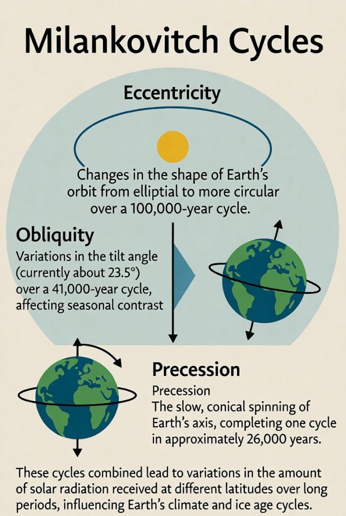 | Heinrich events (every ~7–10 kyr) | Series of 3–6 °C drops | Exact timing & amplitude | <1 °C | Ice-sheet bistability threshold crossed when lunar nodal + obliquity minimum align |